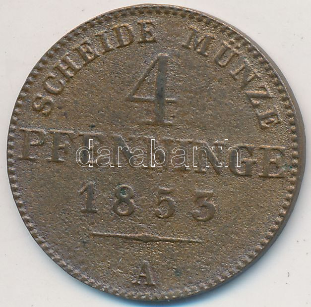 German States / Prussi... https://www.darabanth.com/hu/260-Gyorsarveres/260.0/Numizmatika/Kulfoldi-fem-es-ezustpenzek~300020/Nemet-Allamok-Poroszorszag-1853A-4pf-Cu-T2---German-States-Prussia-1853A-4-Pfennig-Cu-CVF~II1285529