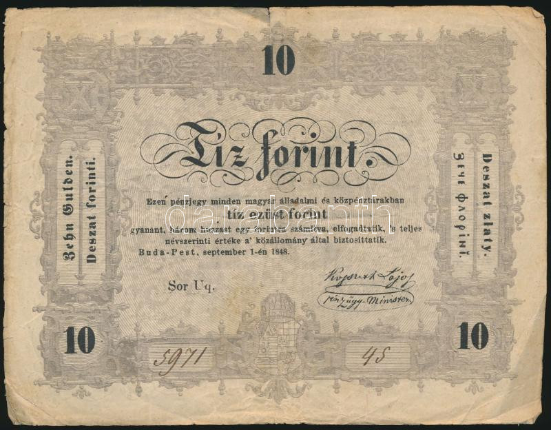 1848. 10Ft "Kossuth bankó" "bünteteTTnek" nyomdai ... https://www.darabanth.com/hu/260-Gyorsarveres/260.0/Numizmatika/Magyar-bankjegyek~300006/1848-10Ft-Kossuth-banko-bunteteTTnek-nyomdai-elirassal-TIII-III---Hungary-1848-10-Forint-~II1258434