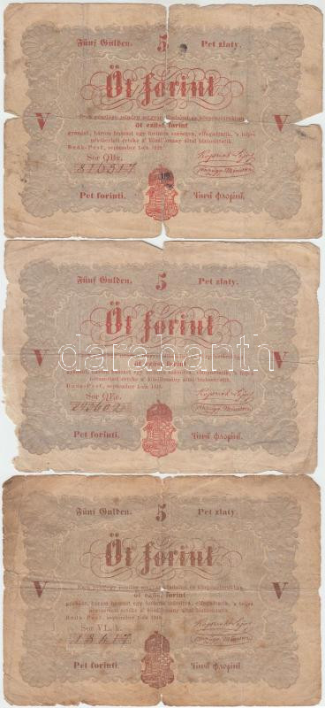 1848. 5Ft "Kossuth bankó" vörösesbarna, barna (3x) + 1849. 3... https://www.darabanth.com/hu/260-Gyorsarveres/260.0/Numizmatika/Magyar-bankjegyek~300006/1848-5Ft-Kossuth-banko-vorosesbarna-barna-3x-plus-1849-30kr-Kossuth-banko-2x-TIII-III-~II1283184