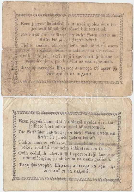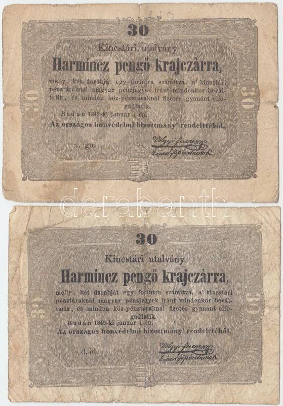Leírás: 1848. 5Ft "Kossuth bankó" vörösesbarna, barna (3x) + 1849. 30kr "Kossuth bankó" (2x) T:III,III-,IV