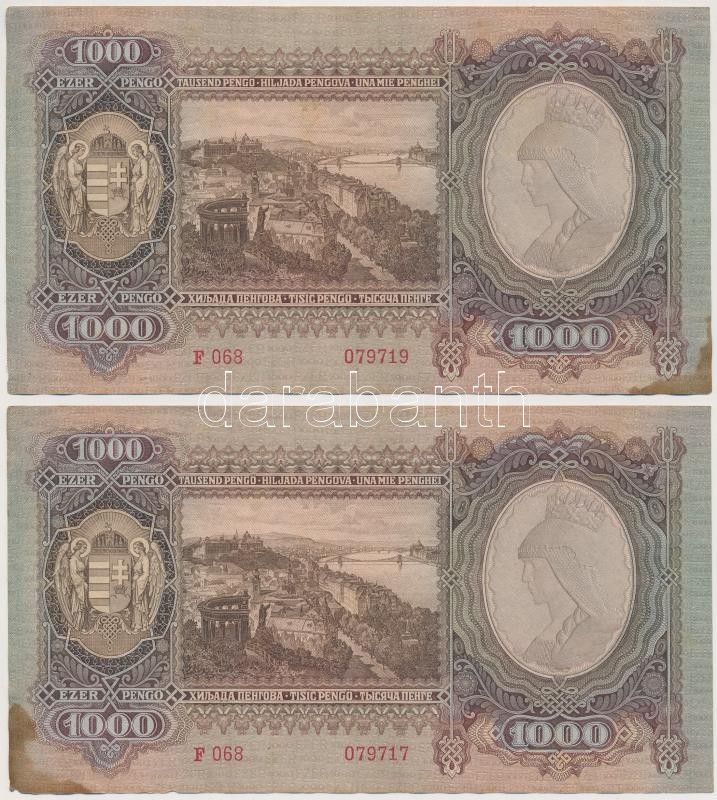 Leírás: 1943. 1000P (2x) egy ugrással sorszámkövetők T:II,II- folt, tűlyuk