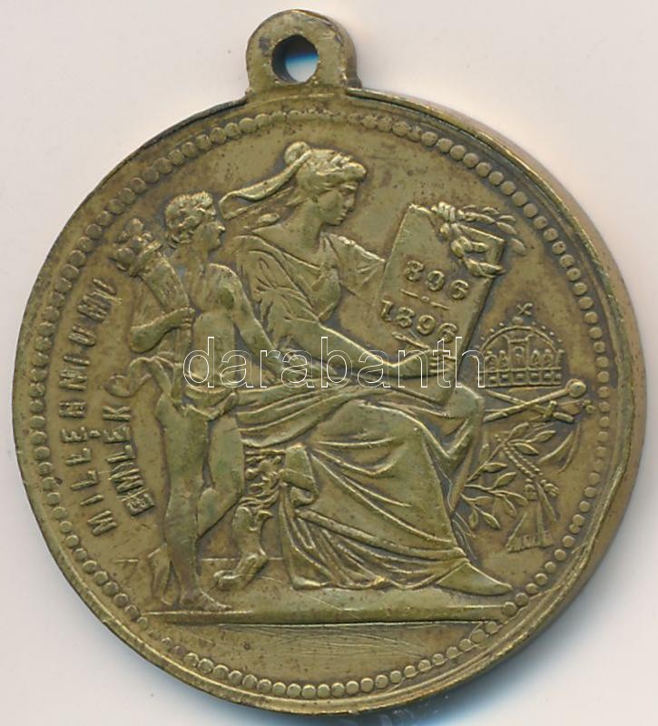 Leírás: 1896. "I. Ferencz József / Millenniumi emlék" fém emlékérem füllel (29,5mm) T:2,2- ph.