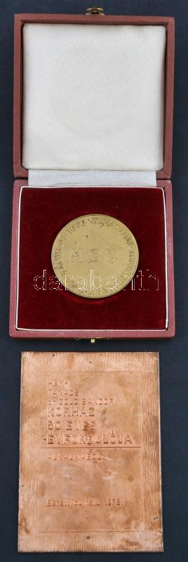 1973. "Berettyóújfalu 1973. október / MST (Magyar Sebész Társaság) Tiszántúli Csoportjának Tudományos Ülése" Br plakett eredeti tokban (68mm) + 1978. "HBM-i Tanács dr. Zöld Sándor Kórház 50 éves évfordulója alkalmából - Berettyóújfalu 1978." Br plakett (127x92mm) T:2