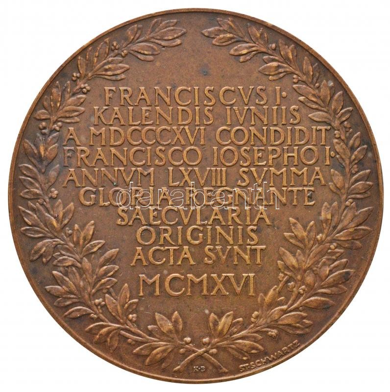 Osztrák-Magyar Monarchia 1916KB "Az Osztrák Nemzeti Bank létrejöttének 100 éves évfordulója" Br emlékérem "PRIVILIGIERTE - OESTERREICHIESCHE NATIONALBANK 1. JUNI 1816 / FRANCISCVS I KALENDIS IVNIIS A MDCCCXVI CONDIT FRANCISCO IOSEPHO I ANNVM LXVIII SVMMA GLORIA REGNANTE SAECVLARIA ORIGINIS ACTA SVNT MCMXVI - K.B" Szign.: ST SCHWARTZ (66mm) T:2,2- ph.