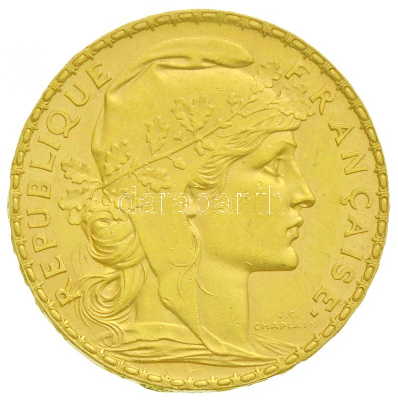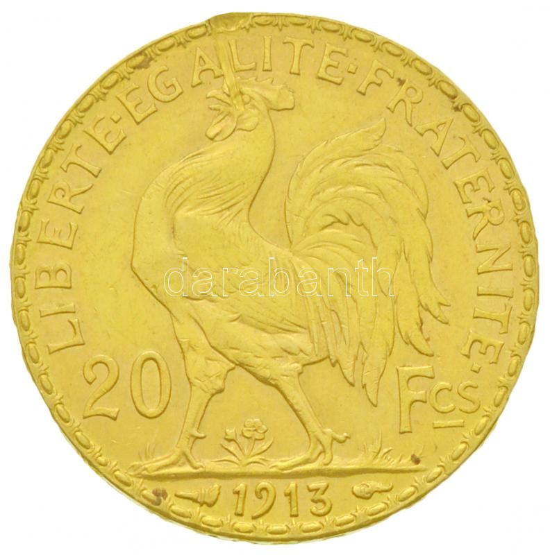 Franciaország/Modern Köztársaság 1913. 20Fr Au "Kakas" utánv... https://www.darabanth.com/hu/260-Gyorsarveres/260.0/Numizmatika/Magyar-es-kulfoldi-aranypenzek-es-emlekveretek~300012/FranciaorszagModern-Koztarsasag-1913-20Fr-Au-Kakas-utanveret-647g0900-utanveret-T2-~II1204997
