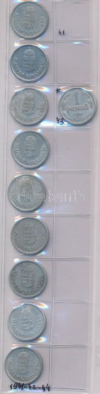Leírás: 1894KB 10f Ni + 1909KB 10f Ni + 1915KB 10f alpakka + 1916-1918KB 20f Fe (5x) + 1941-1945. 1P Al (10x) közte 1943! + 2P Al (4x) + 5P Al (3x) fóliatokban T:vegyes