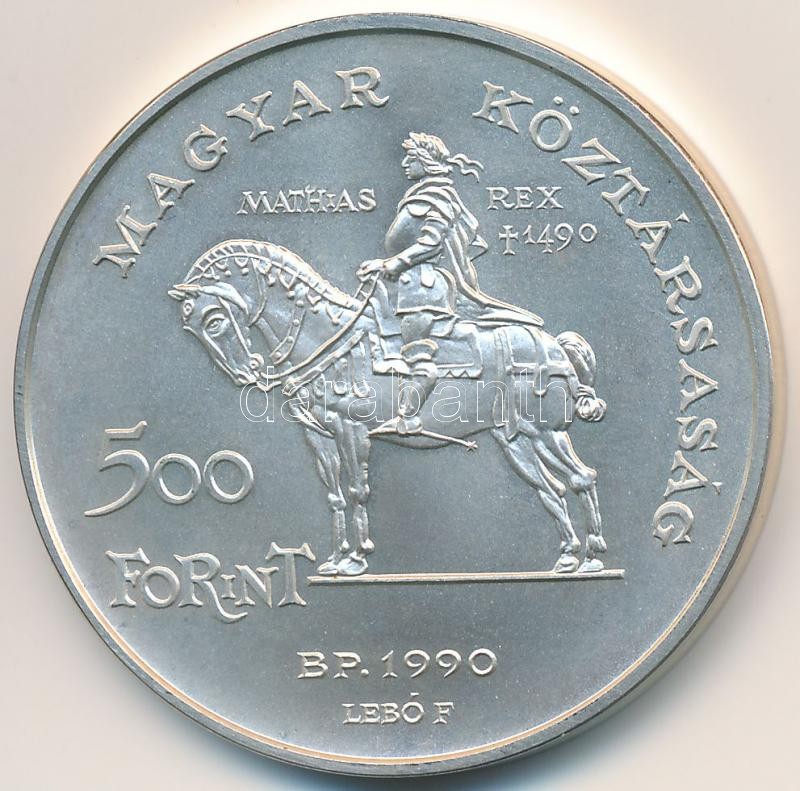 Leírás: 1990. 500Ft Ag "Mátyás király / Beatrix" T:BU