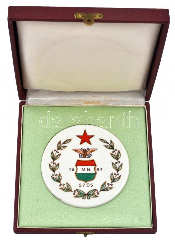 Leírás: 1964. "Magyar Néphadsereg 3705 (150. Közlekedési Műszaki Dandárparancsnokság" porcelán plakett dísztokban (88mm) T:2