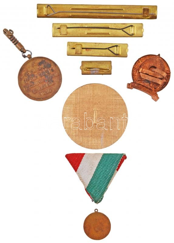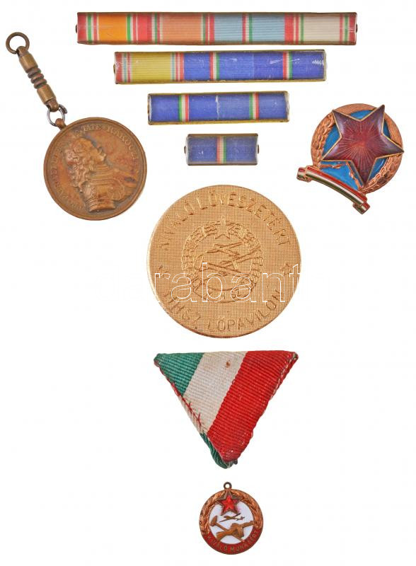 Leírás: 8db-os militária tétel, benne "Felvidéki Emlékérem - II. Rákóczi Ferenc", "Munkásőr" jelvény, "Kiváló Munkáért", "Kiváló lövészetért - MHSZ Lőpavilon" szalagsávok plasztikkal védett fémcsaton T:2,2-