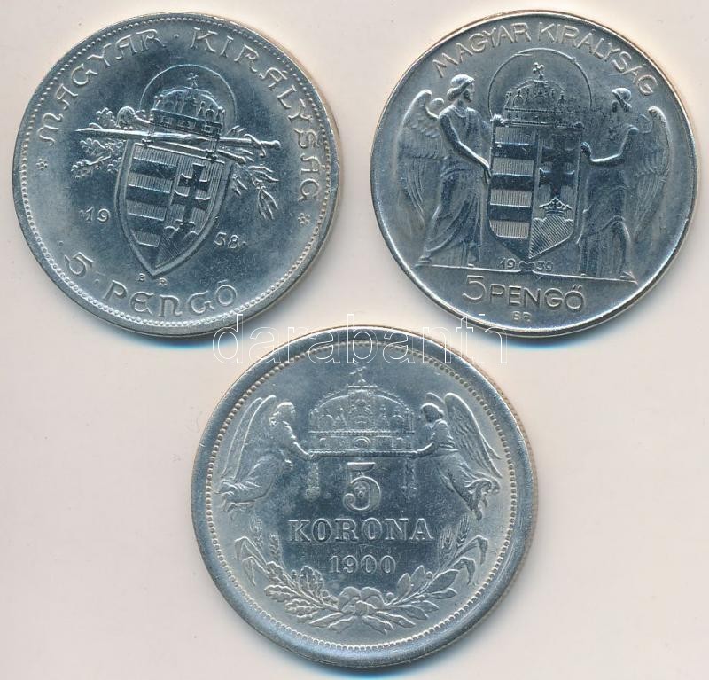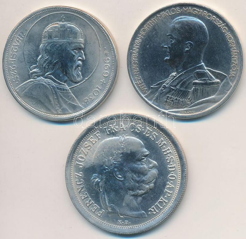 Leírás: 3db Fe replika: 1900KB 5K + 1938. 5P "Szent István" + 1939. 5P "Horthy balra" T:2,2-