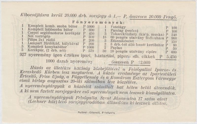 1939. "Ipartestületi Sorsjegy - A Felsőgalla és Vidéke Ipartestül... https://www.darabanth.com/hu/260-Gyorsarveres/260.0/Numizmatika/Reszvenyek-es-sorsjegyek~300027/1939-Ipartestuleti-Sorsjegy--A-Felsogalla-es-Videke-Ipartestulet-sorjegye-1P-ertekben-bC3~II1282785