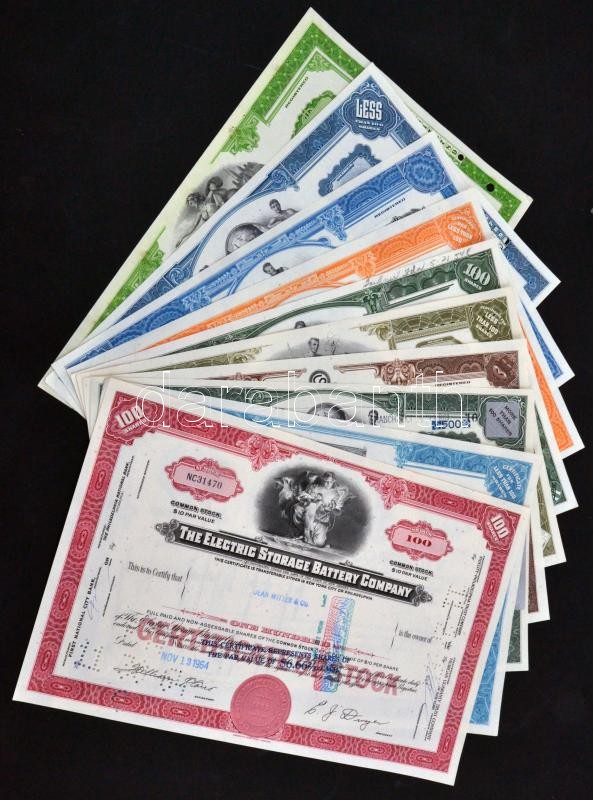 Amerikai Egyesült Államok 1963-1977. 10db klf részvény perforációval, bélyegzésekkel, lyukasztással érvénytelenítve T:I-III