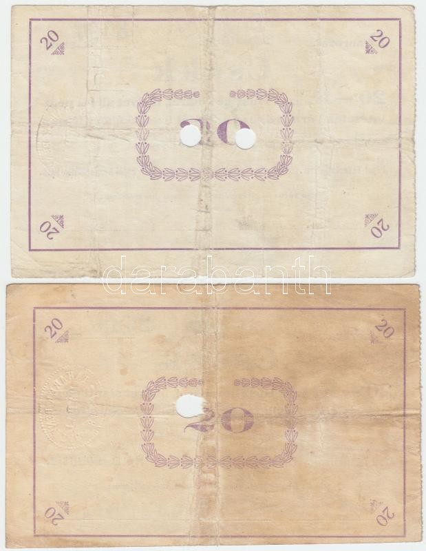 Leírás: Pápa 1919. május 8. "Pápai csekk" 10K + 20K (2x) + 50K mind lyukasztással érvénytelenítve és ovális szárazbélyegzővel T:III,III-