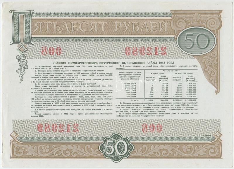 Szovjetunió 1982. "Állami Lottó" 50R értékű sorsjegye T:II