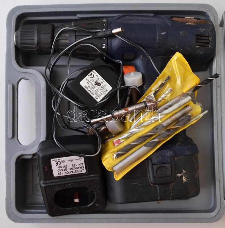 Fúrógép, dobozban, töltővel, működik, h:20 cm, https://www.darabanth.com/hu/261-Gyorsarveres/261.0/Festmeny-mutargy-papirregiseg-egyeb/Bolhapiac~10/Furogep-dobozban-toltovel-mukodik--h20-cm-~II1293652