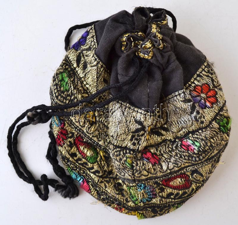 Leírás: Indiai szütyő, m: 13 cm, d: 10 cm