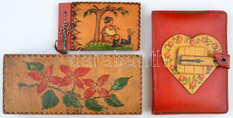 Régi, fa betétes bolha tételek, 3db: emlékkönyv, tolltartó, jegyzettöm... https://www.darabanth.com/hu/261-Gyorsarveres/261.0/Festmeny-mutargy-papirregiseg-egyeb/Bolhapiac~10/Regi-fa-betetes-bolha-tetelek-3db-emlekkonyv-tolltarto-jegyzettomb~II1291607