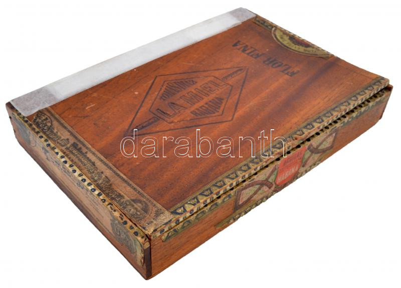 Leírás: Tomasdiaz La Miel Habana szivarosdoboz, fa, javított, 25x16x4cm