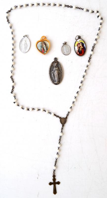 Vallásos medálok(5 db) rózsafüzérrel https://www.darabanth.com/hu/261-Gyorsarveres/261.0/Festmeny-mutargy-papirregiseg-egyeb/Bolhapiac~10/Vallasos-medalok5-db-rozsafuzerrel~II1296096