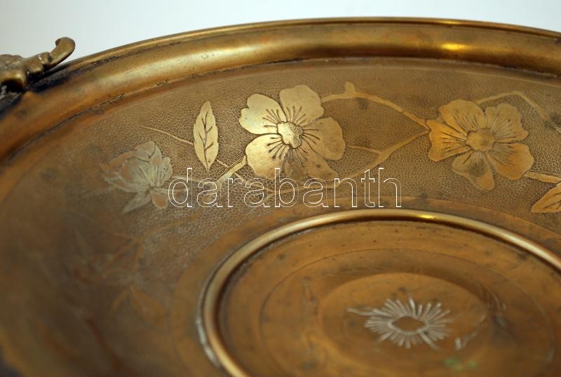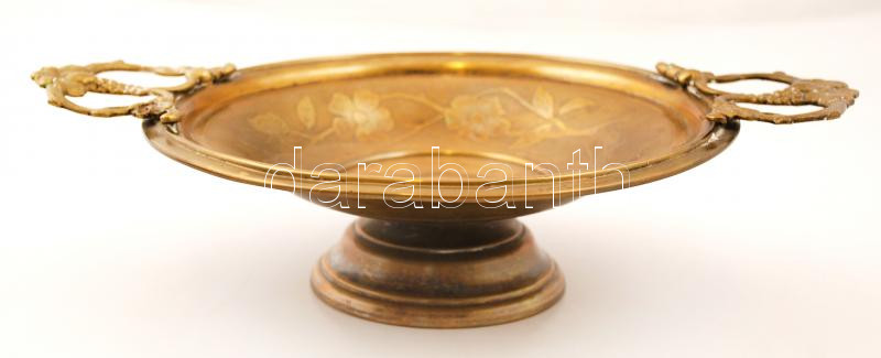 Leírás: Wmf kínáló tál, aranyozott alpakka, jelzett, apró horpadással, m:7 cm, d:22 cm