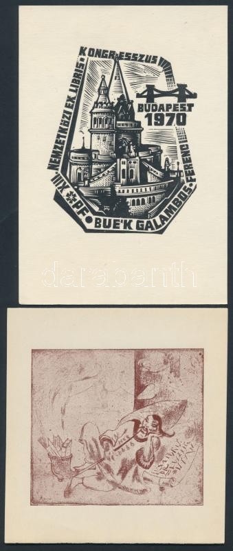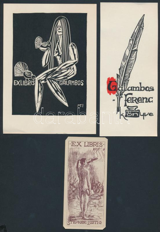 Leírás: 5 db ex libris: Ferry, MFI, Menyhárt, jelzés nélkül, klisék és fametszetek, jelzettek a metszeten, 5×8-13×18 cm