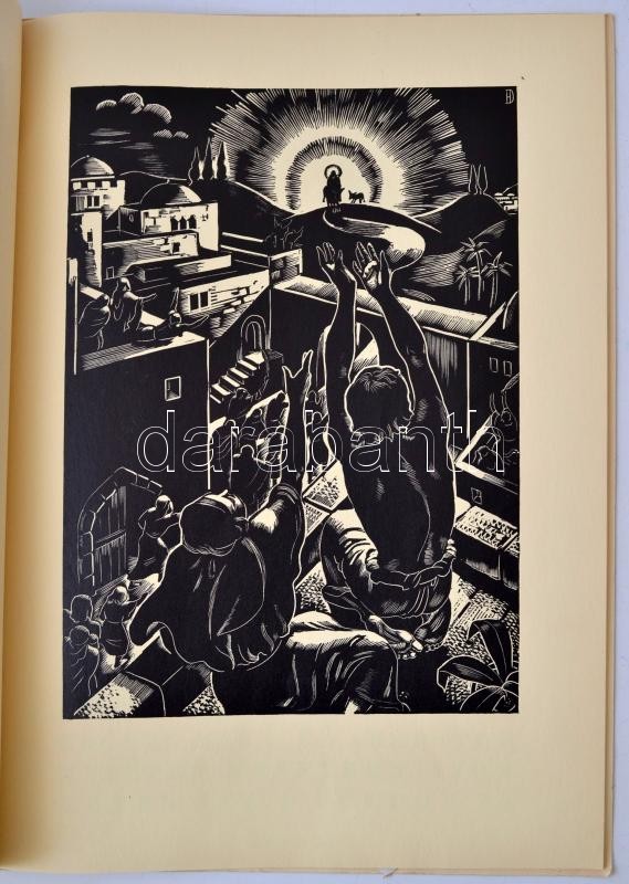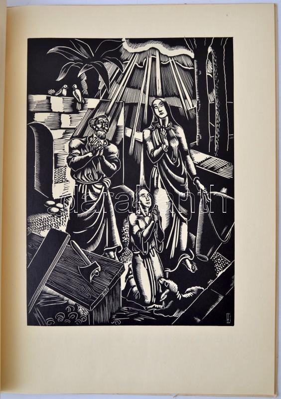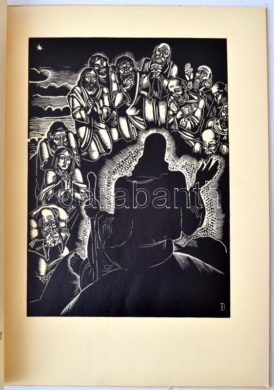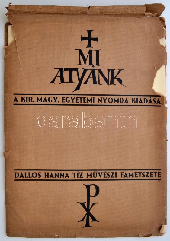 Dallos Hanna (1907-1945): Mi atyánk. 10 db művészeti fametszet. Számos bibliai idézetekkel. 20 p. Jelezve dúcon, eredeti, kissé szakadozott kiadói borítékban. 28x40 cm