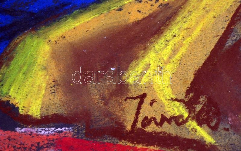 Leírás: Jándi jelzéssel: Fürdőben. Pasztell, papír, üvegezett keretben, 39×55 cm