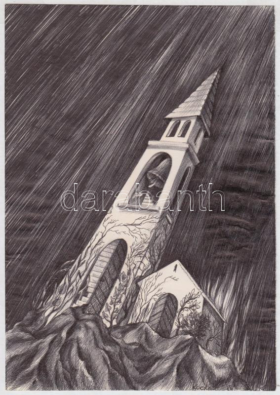Leírás: Jelzés nélkül: Lélekharang. Toll, papír, 21x15 cm