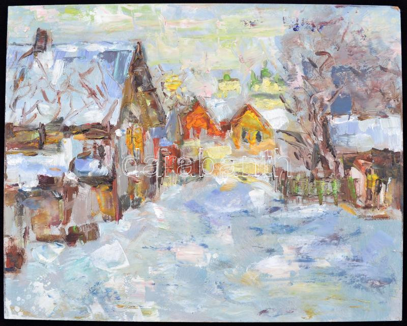 Leírás: Jelzés nélkül: Téli este, olaj, farost, 20×25 cm