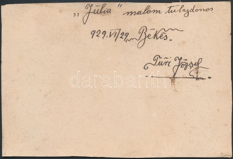 1929 "Julia" malom tulajdonos, Békés, fotó kartonra kasírozv... https://www.darabanth.com/hu/261-Gyorsarveres/261.0/Festmeny-mutargy-papirregiseg-egyeb/Foto~18/1929-Julia-malom-tulajdonos-Bekes-foto-kartonra-kasirozva-verzon-feliratozva-korbevagva~II1295592