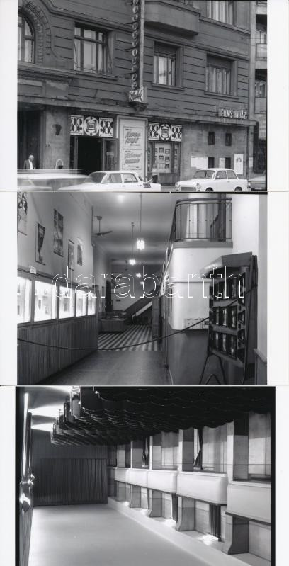 Leírás: 1973 Budapest, DIADAL mozi kívül-belül, 3 db korabeli negatívról készült modern nagyítás 10x15 cm-es fotópapírra