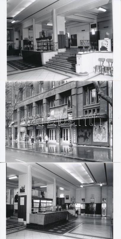 Leírás: 1973 Budapest, TOLDI mozi kívül és belül a váró, 3 db korabeli negatívról készült modern nagyítás 10x15 cm-es fotópapírra