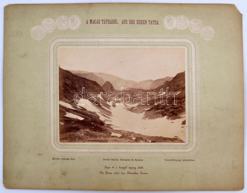 cca 1890 Jeges tó a lengyel nyereg alatt Divald Károly nagyméretű fotója kartonra kasírozva. A magas Tátrából sorozat, fotó méret: 12x16 cm /