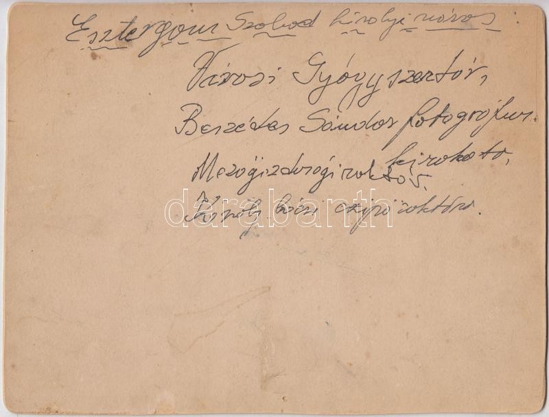 Leírás: cca 1900 Esztergom Szabad Királyi város, Városi gyógyszertár, fotó kartonra kasírozva Beszédes Sándor felvétele, 18x23cm