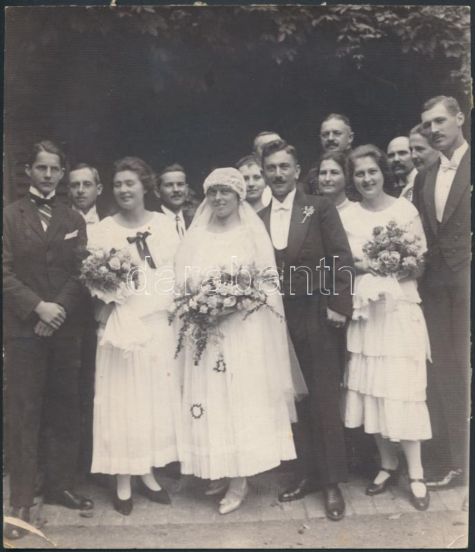 cca 1920 Esküvői csoportkép, jelzetlen fotó, 20x17 cm https://www.darabanth.com/hu/261-Gyorsarveres/261.0/Festmeny-mutargy-papirregiseg-egyeb/Foto~18/cca-1920-Eskuvoi-csoportkep-jelzetlen-foto-20x17-cm~II1297090