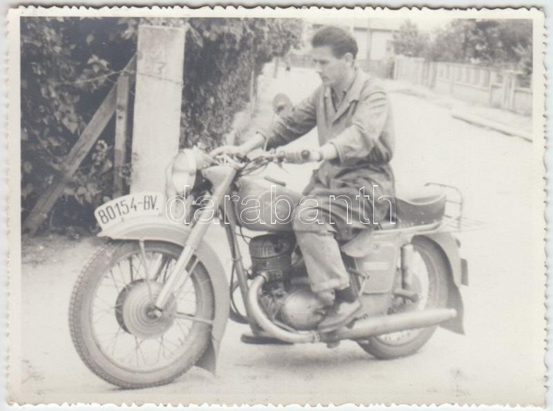 cca 1960 Motorkerékpáros, fotó, 8x11cm https://www.darabanth.com/hu/261-Gyorsarveres/261.0/Festmeny-mutargy-papirregiseg-egyeb/Foto~18/cca-1960-Motorkerekparos-foto-8x11cm~II1292221