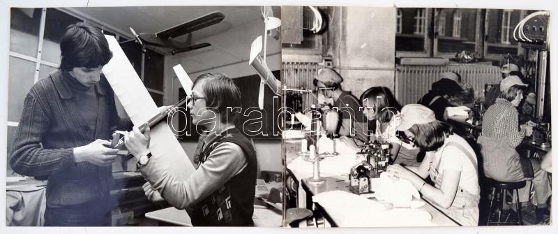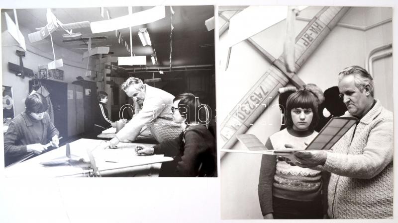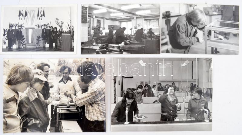 cca 1970-80 Gyakorlati munka különböző középiskolákban, fotók, egy részük az iskola pecsétjével jelzett, 14db fotó különböző méretben, 9x13cm és 24x30cm között