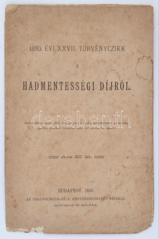 1880. évi XXVII. törvényczikk A hadmentességi díjról. Bp., 1880, Eggen... https://www.darabanth.com/hu/261-Gyorsarveres/261.0/Festmeny-mutargy-papirregiseg-egyeb/Militaria~24/1880-evi-XXVII-torvenyczikk-A-hadmentessegi-dijrol-Bp-1880-Eggenberger-16-p-Kiadoi-pa~II1258513