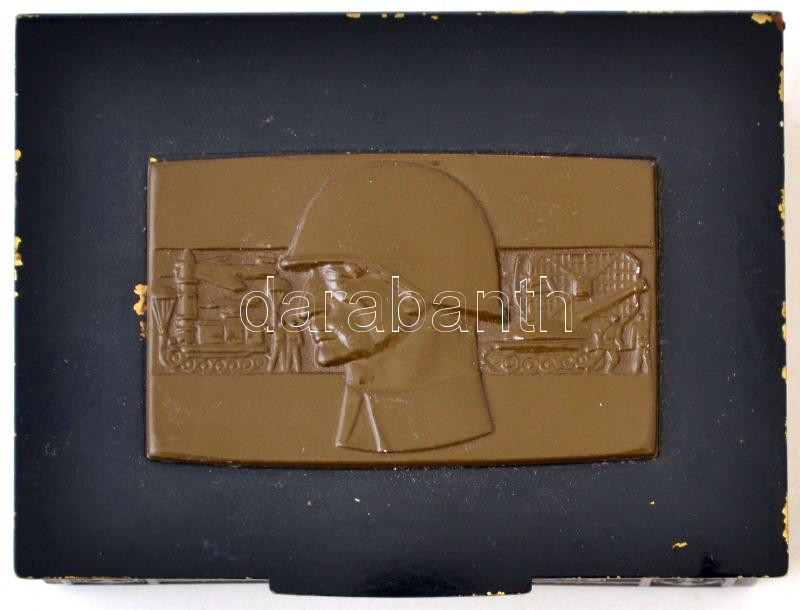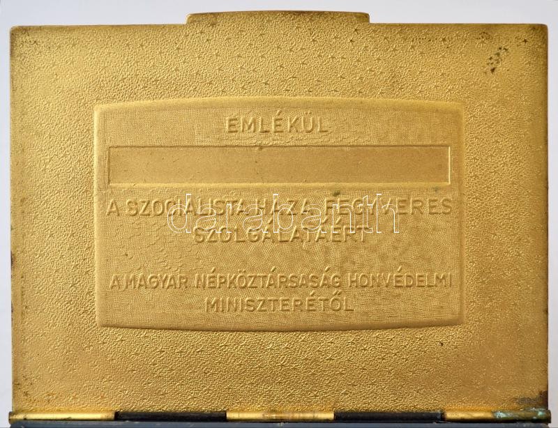 Leírás: "Emlékül a szocialista haza fegyveres szolgálatáért a Magyar Népköztársaság Honvédelmi Miniszterétől" fém doboz domborművel, 9×12x3,5 cm