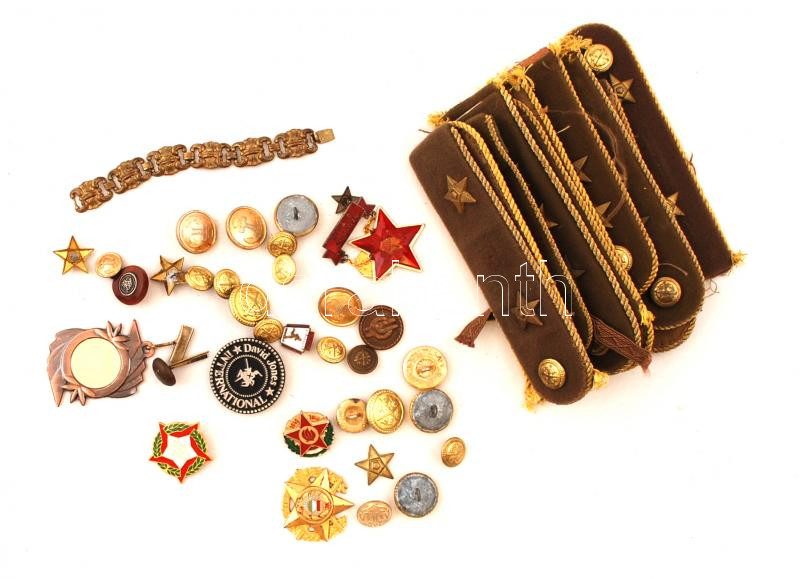 Leírás: Kis doboznyi katonai gomb, váll lap és jelvény