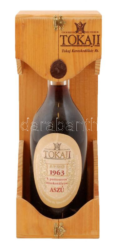 1963 Tokaji aszú, 5 puttonyos muskotályos, újrapalackozva 2001-ben (ta... https://www.darabanth.com/hu/261-Gyorsarveres/261.0/Festmeny-mutargy-papirregiseg-egyeb/Muzealis-borok~12/1963-Tokaji-aszu-5-puttonyos-muskotalyos-ujrapalackozva-2001-ben-tanusitvannyal-diszdobo~II1292362