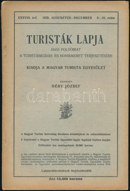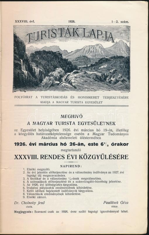 1926 Tursiták Lapja, Havi folyóirat a turistáskodás és honismeret terjesztése, 3 szám, 23x15cm+ 1943 Turista Értesítő, Magyar Turisták Orsz. Szöv., 2szám, 24x17cm