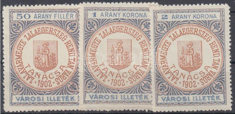 Leírás: 1902 Zalaegerszeg városi illeték 50arany fillér és 1arany korona, 2arany korona illetékbélyeg (~12.000)