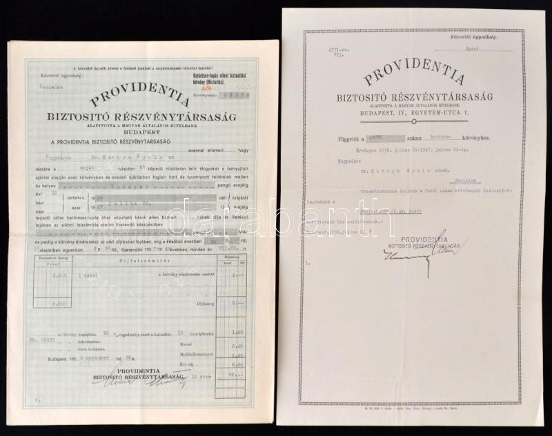 Leírás: cca 1930-1940 4 db különféle biztosítási kötvény