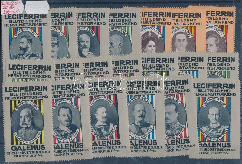 Leírás: 20 db uralkodókat ábrázoló levélzáró, közte 2 db hibással
