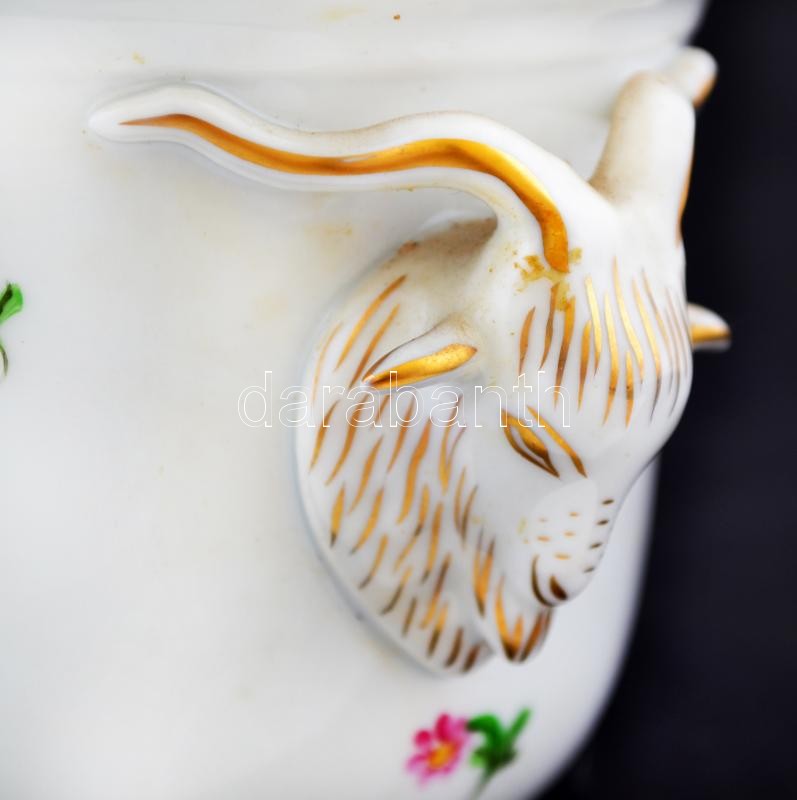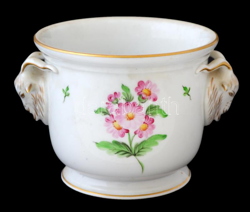 Leírás: Herendi porcelán kosfejes virágmintás kaspó, kézzel festett, hibátlan, jelzett, d: 11 cm, m: 9 cm