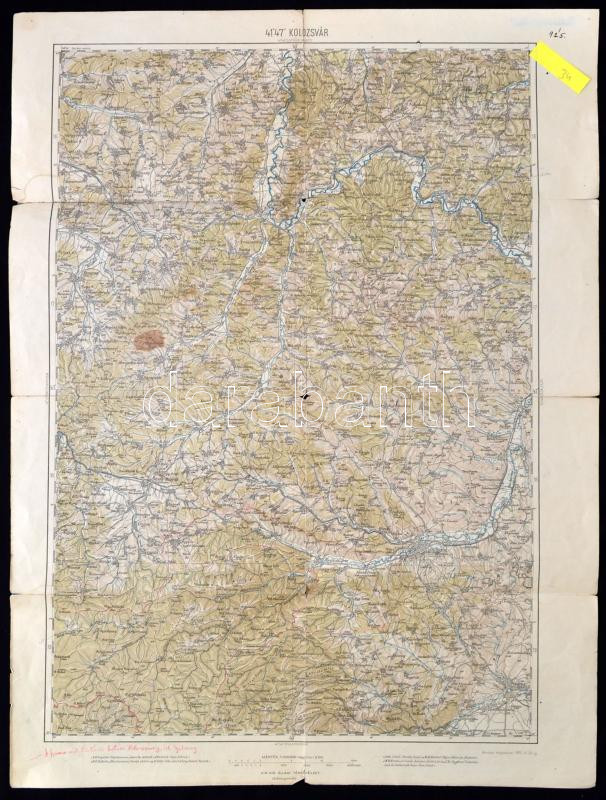 Leírás: 1915 Kolozsvár (és környéke) katonai térkép, A. M. Kir. Állami Térképészet, 1:200.000, kis hibákkal, 62x47cm