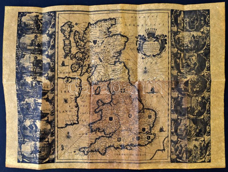 Leírás: Britannia prout divisa fuit temporibus Anglo-Saxonum, praefertim durante illorum Heptarchia, reprint térkép, hajtogatva, 37x50cm