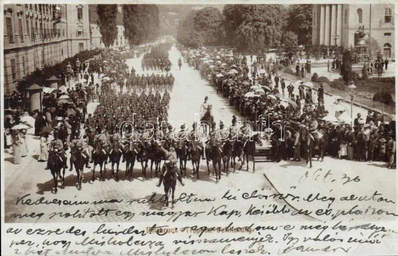 Leírás: Innsbruck, Magyar csendőrök / Truppen-Defilierung / Hungarian gendarmes, military parade (EB)