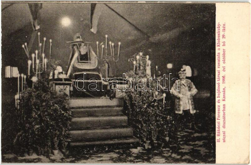 1906 Kassa, Kosice; II. Rákóczi Ferencz és bujdosó társai ravatala a K... https://www.darabanth.com/hu/261-Gyorsarveres/261.0/Kepeslapok/Felvidek~400009/1906-Kassa-Kosice-II-Rakoczi-Ferencz-es-bujdoso-tarsai-ravatala-a-Klobusisczky-utcai-diszsC3~II1294396
